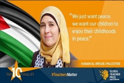 حنان الحروب الفلسطينية أفضل معلمة في العالم .. فيديو