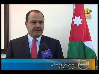 مداعبة وزير الداخلية المجالي لمذيع التلفزيون الاردني الذي أخطأ بأسمه