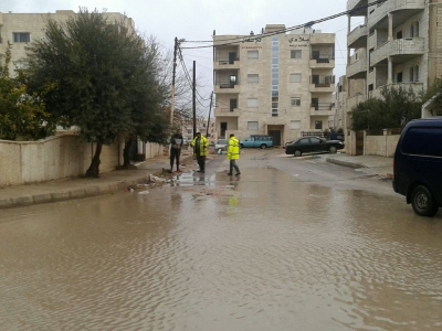 بالصور.. مياه الامطار تغرق شوارع اربد والبلدية تخصص 250 موظف للتعامل مع "هدى"