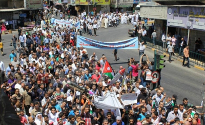 مسيرة حاشدة وسط العاصمة عمّان تنديدا بالعدوان على غزة