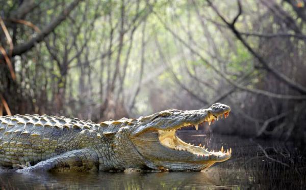 عامل ينجو بأعجوبة من فكي تمساح