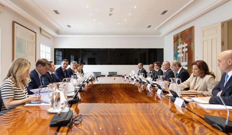في سياق زيارته الرسمية لإسبانيا، التقى جلالة الملك عبدالله الثاني، ملك المملكة الأردنية الهاشمية، برئيس حكومة إسبانيا بيدرو سانشيز في 19 حزيران 2023 في قصر مونكلوا.