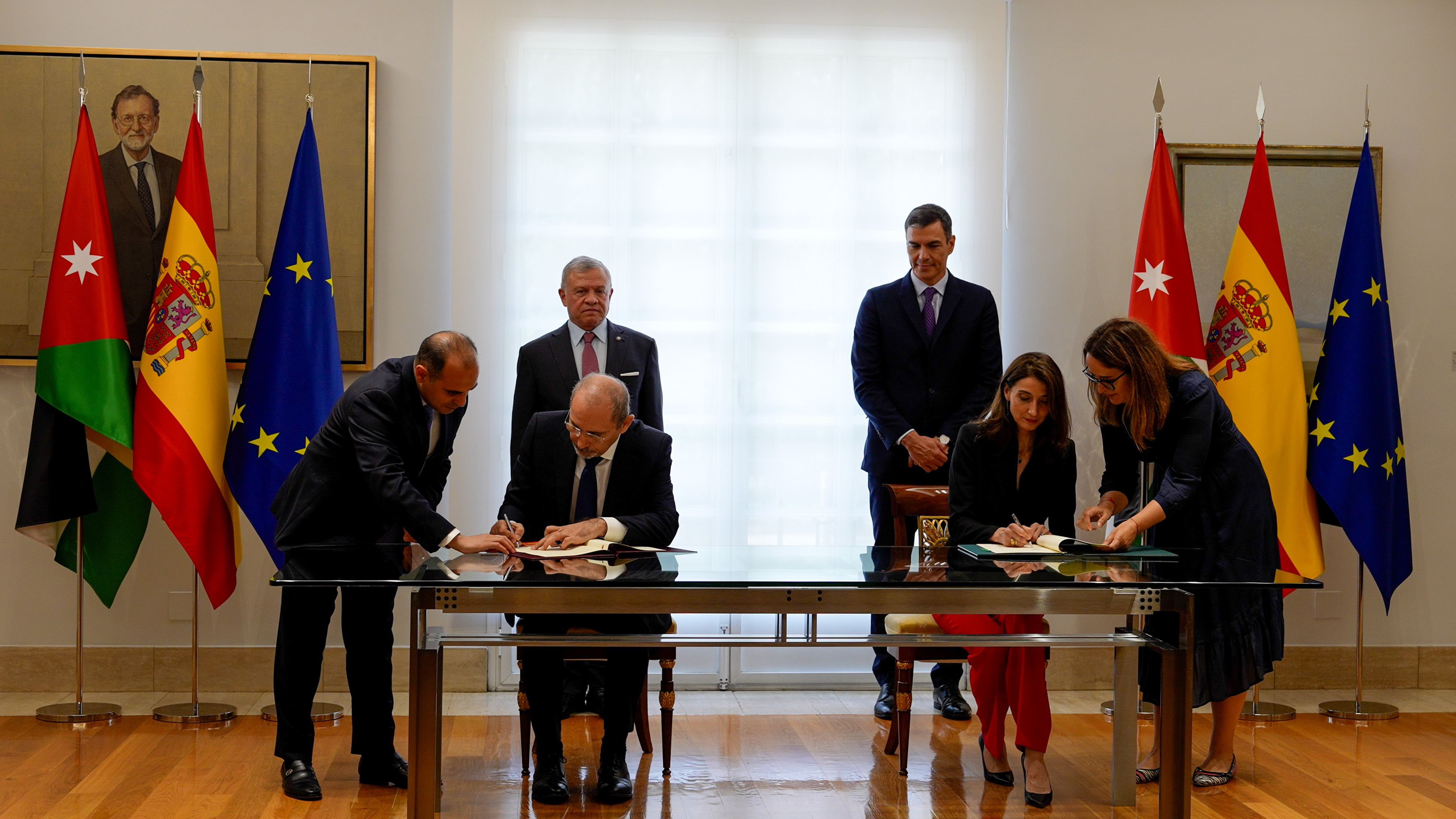 وشهد جلالة الملك ورئيس حكومة إسبانيا توقيع اتفاقية بين حكومتي البلدين حول الاعتراف بالشهادات الأهلية للبحارة، ومذكرة تفاهم لتعزيز التعاون في المجالات القانونية والقضائية، ووقعهما عن الجانب الأردني نائب رئيس الوزراء ووزير الخارجية وشؤون المغتربين أيمن الصفدي وعن الجانب الإسباني وزيرة النقل راكيل سانشيز خيمينيز ووزيرة العدل بيلار يوب كوينكا.