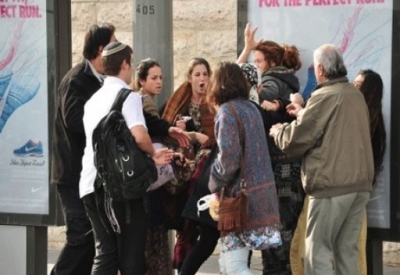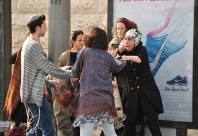 ![]() وكالة كل العرب الاخبارية : نشرت جريدة "معاريف" الإسرائيلية يوم الثلاثاء صورًا تظهر مجموعة من النساء الإسرائيليات المتطرفات وهن يهاجمن فتاة فلسطينية كانت تقف فى محطة السكة الحديد بمدينة القدس. ونقلت "معاريف" عن شهود عيان ان واحدة من مجموعة الإسرائيليات بادرت بتوجيه ضربة بقبضة يدها إلى الفتاة الفلسطينية بلا سبب، وبدأت المشاجرة بينهما لتنضم باقي مجموعة الإسرائيليات المتطرفات إلى الأولى ويعتدين جميعًا على الفتاة الفلسطينية. وأضافوا أن النساء الاسرائيليات حاولن خلع الحجاب الذى ترتديه الفتاة الفلسطينية، لكنها قاومت، قبل أن ينجحن في انتزاع حجابها في نهاية المطاف. وقالت احدى شهود العيان ناشطة السلام الاسرائيلية دوريت التي تمكنت من التقاط صور للحادث الذي وقع يوم الاثنين 25 فبراير ان الذين شاهدوا حادثة الاعتداء لم يتدخلوا في الأمر. وفتحت الشرطة الاسرائيلية تحقيقا في الحادث بعد نشر الخبر في الصحيفة.