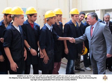 وخلال تبادل جلالة الملك الحديث مع الطلبة، استذكر جلالته تجربته الخاصة عندما كان طالبا في المدرسة، وكيف كان التدريب المهني والحرفي يستهويه دائما، لافتا جلالته إلى أهمية العمل الحرفي والصناعي ودوره الكبير في بناء المجتمعات والدول.