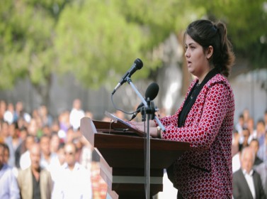 وخاطبت زميلاتها وزملاءها ممن يجلسون على مقاعد الدراسة قائلة: إن الأهداف العظيمة لا بد لها من نفس أبية وعزيمة متينة فالغايات العالية لا بد لها من عمل وجهد دؤوب ومتواصل.
