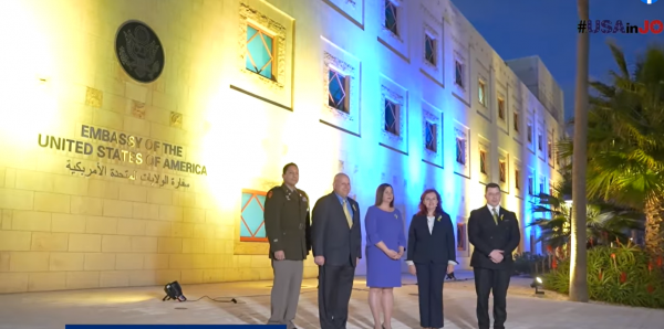 إضاءة السفارة الأمريكية في عمان بألوان العلم الأوكراني
