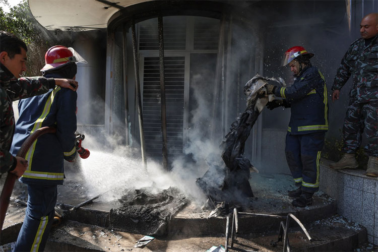 محتجون يضرمون النار بعدة بنوك في بيروت