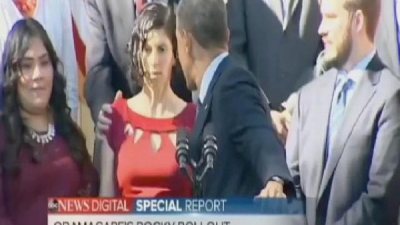 معتلة بالسكري تقطع على أوباما خطابه وكادت تنهار