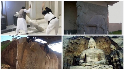 مقاتلون يحطمون تمثال هارون الرشيد بسورية