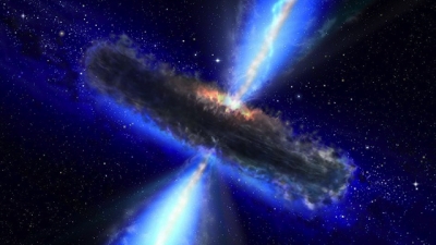 كوازارعملاق يضيء سحابة غازية تربط بين المجرات